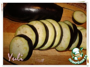 Баклажаны помыть, нарезать не очень тонкими кружочками, посолить и оставить на 20 мин.