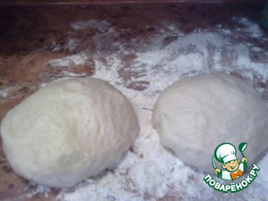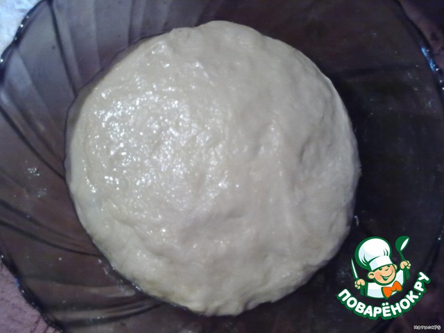 Обмазываем его маслом, укладываем в миску, накрываем влажной салфеткой и ставим в теплое место минут на 30. Тесто должно увеличиться вдвое