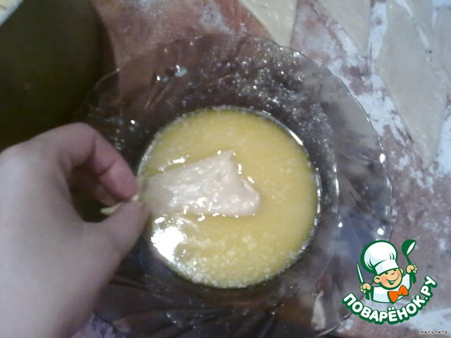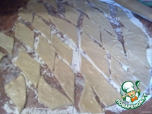 Раскатываем каждую часть в пласт толщиной 7-8 мм. Смазываем верх маслом