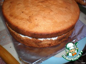 На утро: из середины нижнего коржа удалила мякоть. Мякоть выкидывать не стала, она еще пригодится. Идею подсмотрела у Юлии (Yuli) http://www.povarenok .ru/recipes/show/212 54/, за что ей тоже огромное спасибо. Кстати, в этом рецепте еще и очень подробно описан процесс приготовления бисквита.