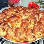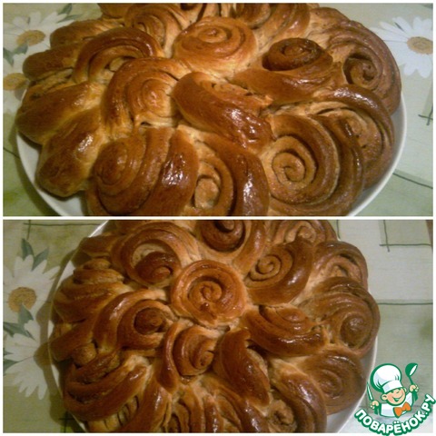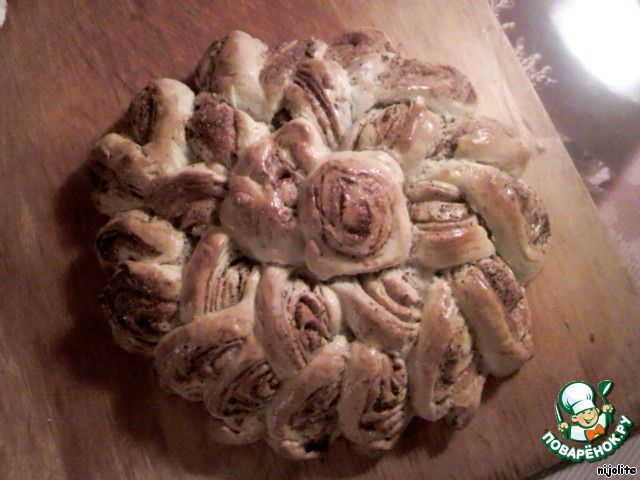 Смазать яйцом, дать расстояться 15 мин. и отправить в духовку на 30-35 минут. Из указанного количества ингредиентов получается два рулета.