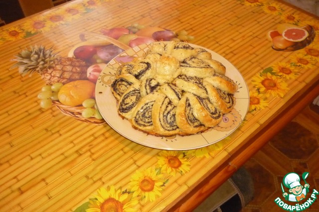 Мак предварительно проварить и растереть или размолоть. Свернуть рулет и соединить концы. -