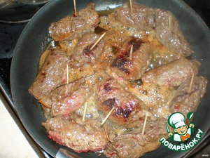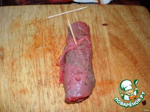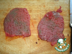 Мясные кусочки хорошенько отбить молоточком, посолить и поперчить