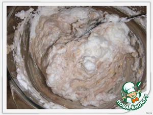 В массу положить взбитые белки, аккуратно перемешать массу.
