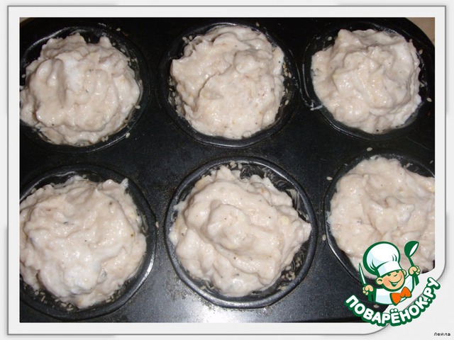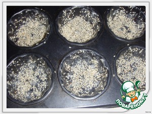 Формочки смазать сливочным маслом, обсыпать сухарями, я предпочла кунжутные семечки.