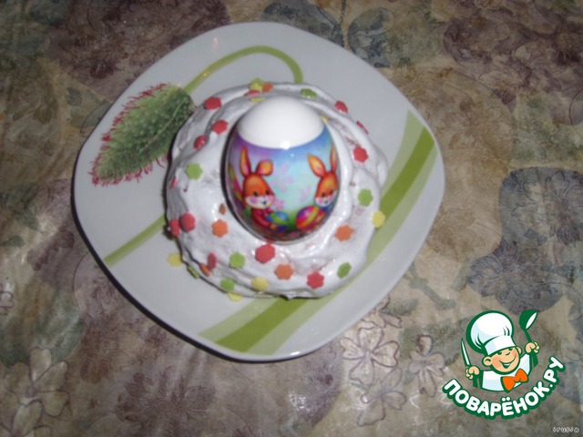когда глазурь окончательно застынет (примерно 3-4- часа), в углубления можно поставить пасхальные яйца. При желании можно делать гнёздышки крупнее, тогда в серединку можно будет положить несколько яиц.