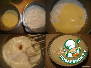 Яичные желтки растереть с сахаром, а белки с ванильным сахаром и эссенцией.