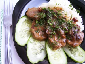 Язык говяжий в кисло-сладком соусе