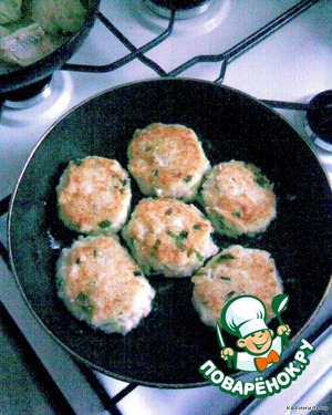 Из рисовой массы слепить 12 фрикаделек и жарить по 2-3минуты с каждой стороны.