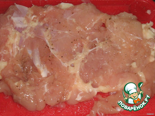 У окорочка вырезать косточку, т. е. снять филе и отбить через пакет.
