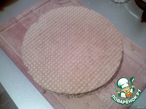Накрыть вторым вафельным коржом. Придавить слегка и оставить минуты на 3 для пропитки