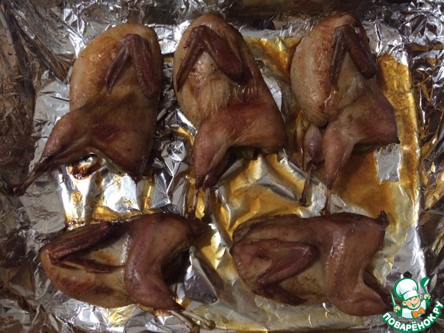 Готовятся очень быстро, а съедаются еще быстрее. Кто не пробовал запеченных перепелов, очень рекомендую. Почти курица, только маленькая, конечно же, со своим вкусом. Угощайтесь