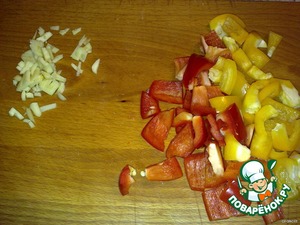Перец (у меня половинки от 2-х, разного цвета) нарезать крупными кусочками.