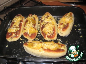 Когда они подрумянились, я посыпала их сыром и на две минуты в духовку до расплавления сыра.