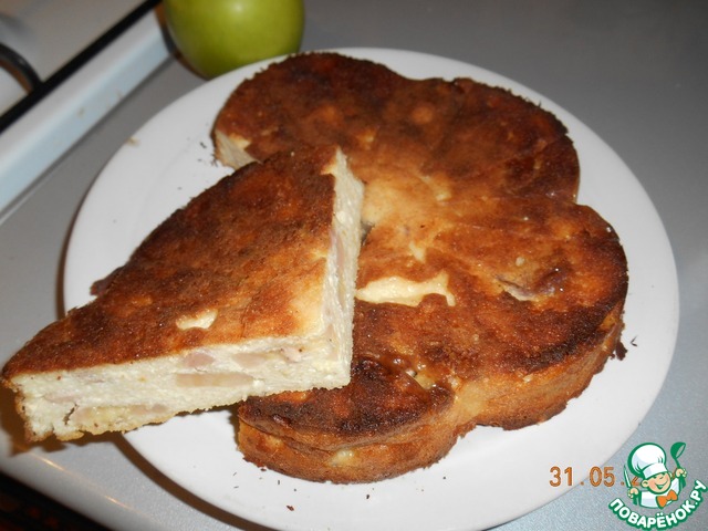 Несложная в приготовлении творожная запеканка с добавлением фруктов.