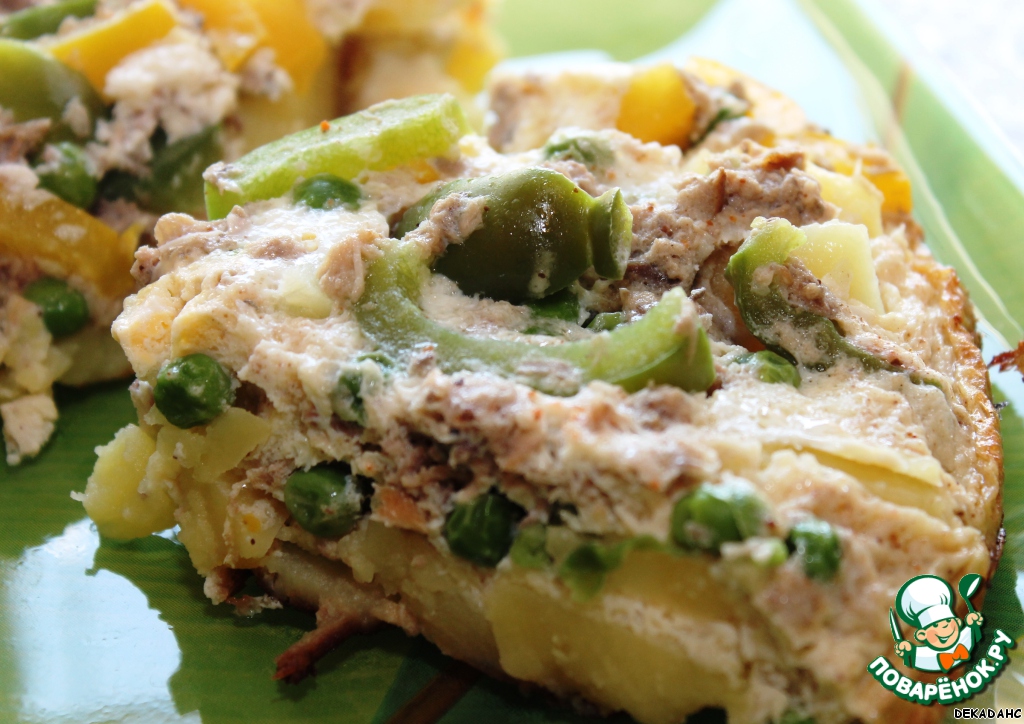 Тортилья - это разновидность испанского омлета с овощами. Начинки могут быть самыми разными. Я сделала с картофелем и тунцом.