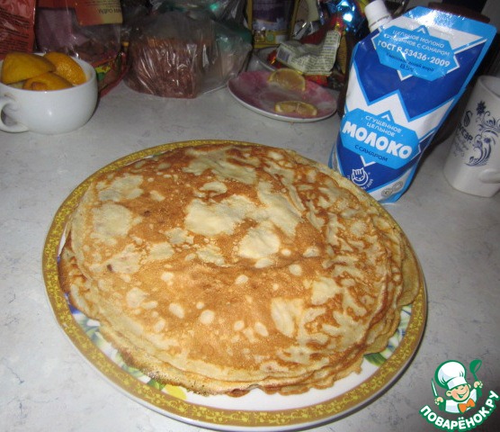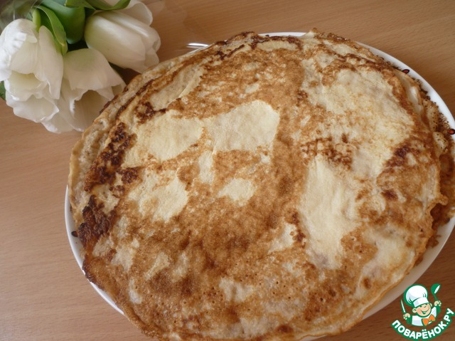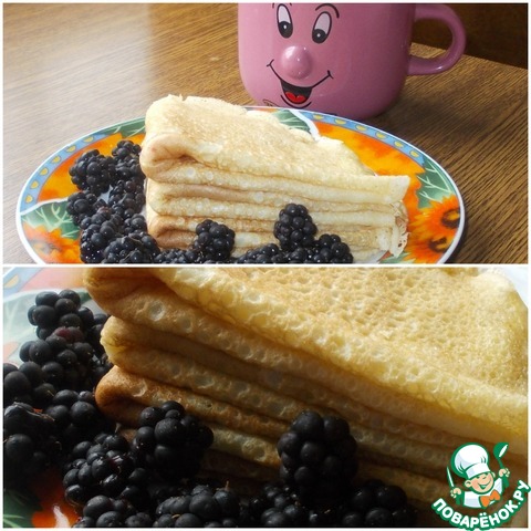 Давным-давно, когда я была начинающим поваренком не только на сайте, но и в жизни, только-только начинала вести самостоятельно хозяйство, я пожаловалась коллеге, что блины у меня не получаются - времени уходит много, а результат - так себе: кривые, с комками... Не люблю я их готовить. А она дала рецепт, с которым я уже не расстаюсь долгое время. В нашем доме блины едятся только такие, по определению малышни - вкусняшные. Может быть кто-то, как и я в свое время, изменит к блинам отношение!