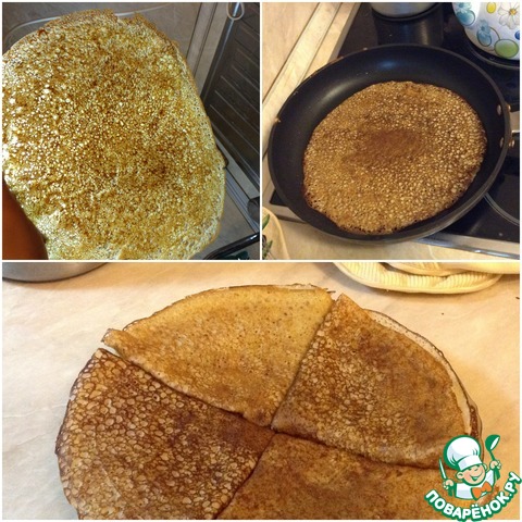 Смазываем маслом раскаленную сковороду и выпекаем блины.