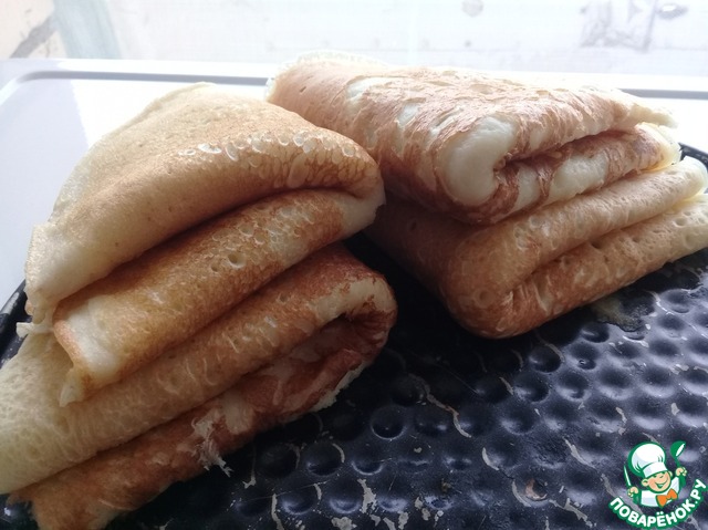 Всё удачно, блинчики нежные, не особо тонкие, но это уже мое желание)))