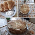 Стоит заметить, я только учусь, возможно где-то накосячил и руки кривые. Пока только ищу "свой" рецепт блинов. И этот явно не он.