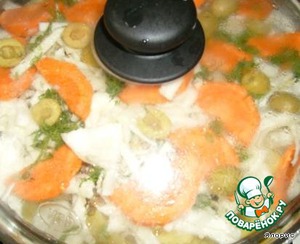 - Оливки зеленые (можно использовать соленый огурец) — 10 шт
