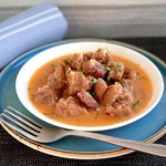 Во-первых, у меня ушло не 35 минут, а целый час, начиная с момента, как мясо и лук были положены в сковородку. Может быть, я воды слишком много налила в первый заход или огонь не той силы был
