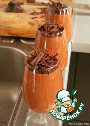 Мусс разложить по бокалам. Оставшийся шоколад потереть на крупной терке и посыпать сверху. Поставить в холодильник на 1 час.