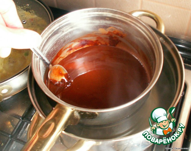 Разломать 100 гр шоколада и растопить на водяной бане (или в СВЧ).