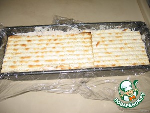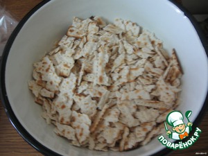 Одну пластинку мацы оставляем, а остальные ломаем руками.