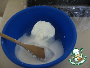 Аккуратно перевернуть торт на блюдо и снять плёнку.