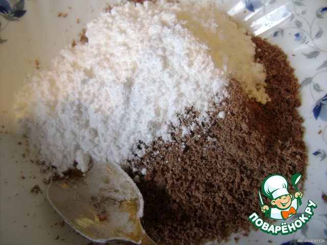 Натереть шоколад и смешать его с сахарной пудрой