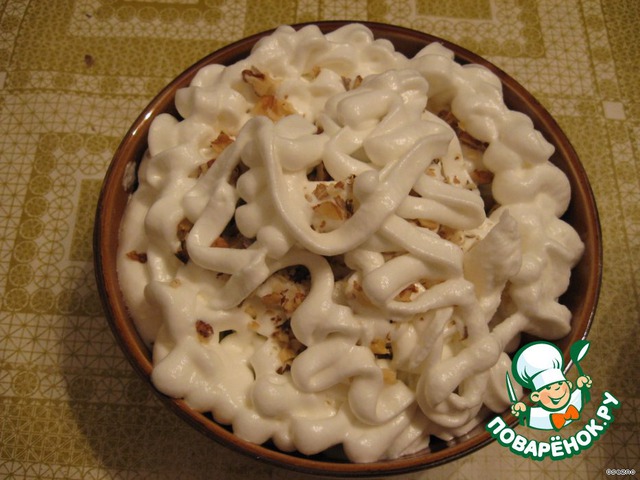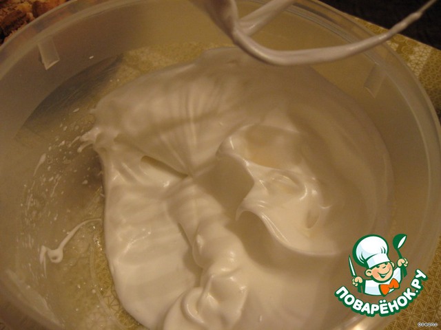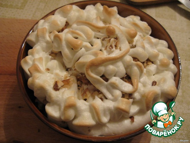Заливаем взбитыми белками и ставим в духовку на 10 минут при температуре 200 градусов. Самое интересное, что мороженое не тает при такое температуре.