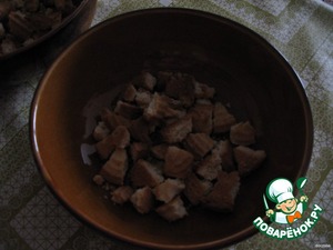 На дно тарелки выкладываем печенье. В идеале должно быть "Дамское", но у меня не было, поэтому заменила похожим и меленько его поломала.