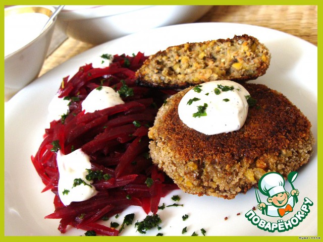 Рецепт "Чечевичные котлеты на свекольной "подушке"":