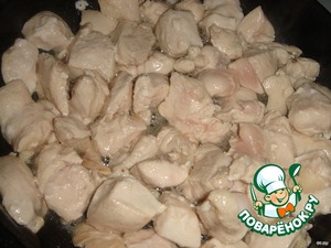 Филе обмыть, обсушить, нарезать небольшими кусочками и обжарить на растительном масле 5 минут. Поперчить и посолить по вкусу.