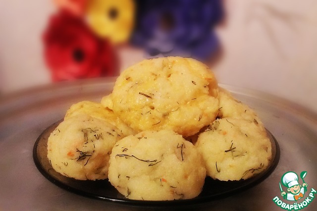 Такие шарики можно преподнести и как десерт, и как закуску, смотря что вы больше предпочитаете - сладкое или с приправками. Очень напоминают суфле. Для детей можно сладкие, для взрослых - с приправками.