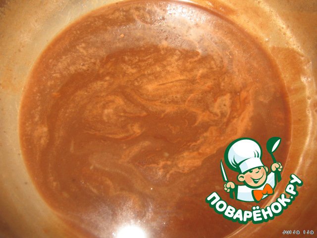 • В кастрюльке смешать молоко, сливочное масло (мягкое. Если нет, то порезать его на кусочки, чтобы быстрее растворилось), сахар, шоколад поломать на небольшие кусочки, добавить какао (чтобы лучше смешалось, его нужно предварительно смешать в чашке, с небольшим количеством молока, растирая комочки, если они появятся). Поставить всё на огонь и довести до кипения. Дать покипеть секунд 10. Когда слегка остынет, добавить коньяк, но это по желанию.