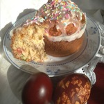[+5]Впервые тогда решила испечь кулич сама, а не покупать в магазине. Да и вот вздумалось именно бездрожжевой. Рискнула и не прогадала с Вашим рецептом!) Ввиду отсутствия спец.формы пекла в алюминиевой кастрюле, постелив в нее кальку. Все тесто побоялась наливать, так что еще и мини-куличики в формах для кексов вышли)) Опасаясь, что не пропечется, времени на выпекание дала больше, чем по рецепту. А кулич еще и треснул неплохо так