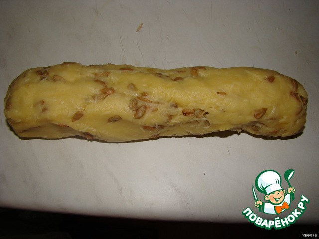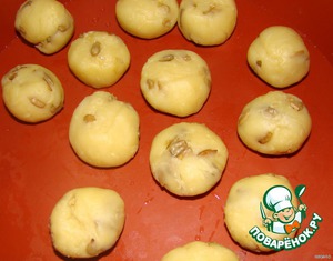 Скатаем тесто в колбаску. Нарежем на монетки. Скатаем шарики диаметром примерно 1.5-2 см