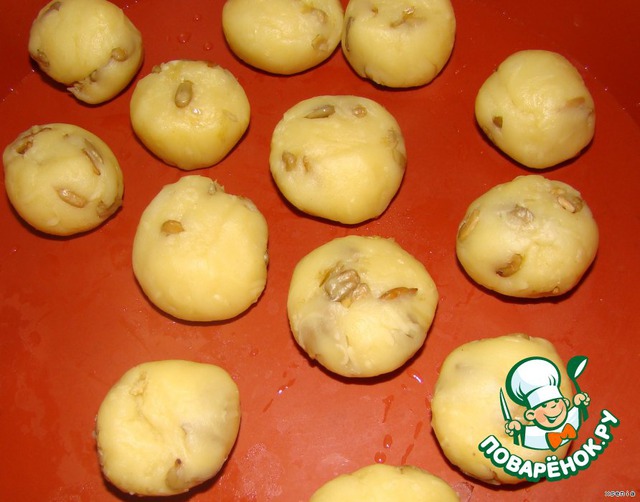 Тесто. Воду с сливочным маслом и солью доведем до кипения Всыпаем муку и быстро замешиваем тесто. Дайте тесту немного остыть добавляем яйца. Хорошенько перемешиваем. Добавляем тертый сыр и семечки