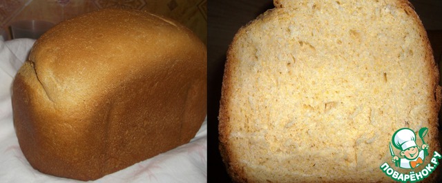 Положить ингредиенты для хлеба в чашу хлебопечки в том порядке, в котором рекомендуется в инструкции вашей хлебопечки. Выставляем режим выпечки "Основной" (у меня 3 часа 40 минут). Цвет корочки по желанию (у меня тёмный).