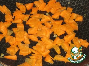 Начала жарить лук и вспомнила про морковку, пришлось жарить по отдельности, а вообще все вместе можно, да и нужно.