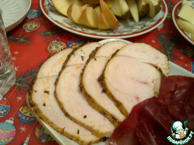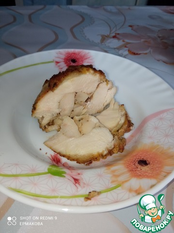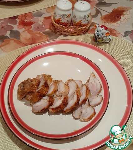 Это нечто !!!! Нежное , сочное мясо с легким ароматом паприки и чеснока!!!! Рецепт изумил меня своей простотой и необычностью . Отличнейшее блюдо для праздничного пасхального стола. Сегодня я сделала «пробный» вариант. В оригинале рецепта ее делают из грудки индюшки. Сегодня я приготовила ее из куриной грудки, так как за индюшкой топать нужно дальше …