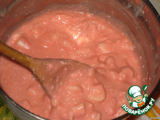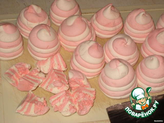 Не было обычного ванильного зефира, был двухцветный, со вкусом земляники. В итоговом продукте вкуса земляники не было, ну если ооооочень отдаленно, но зато цвет сильно порадовал, гламурненько так получилось)))