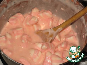 Сливки с зефиром поставить на водяную баню и при помешивании растворить массу.