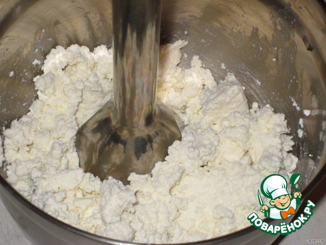 Творог протереть через сито 2 раза или с помощью блендера превратить его в творожную пасту.