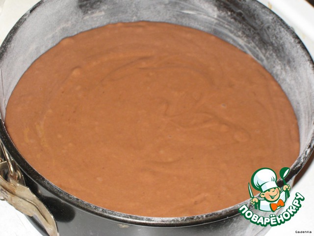 Тесто выложить в форму, смазанную маслом и выпечь корж при 180 С, 35-40 минут, до сухой палочки.