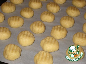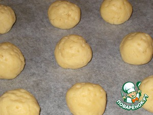 Из теста руками скатать шарики, диаметром 2-2,5 см, выложить на противень.