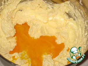 Затем добавить желтки и опять взбить, чтобы желтки хорошее втерлись в маргарин.