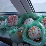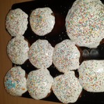 Для глазури взбиваем отложенные два белка, постепенно добавляя сахарную пудру и в конце - чайную ложку лимонного сока. Покрываем верх "пасочек" глазурью и украшаем посыпкой... Ну, или кто как умеет...))